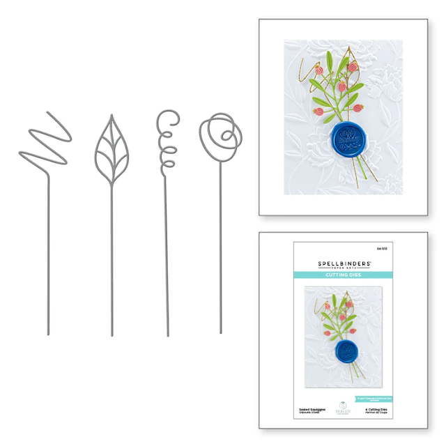 The Sealed Squiggles Etched Dies are from the Sealed by Spellbinders Collection. This set of four thin metal cutting dies are perfect for any floral or bouquet accent. They add just the right touch! Most are approximately five-inches tall so trim them to create the right height. There are four designs to choose from!