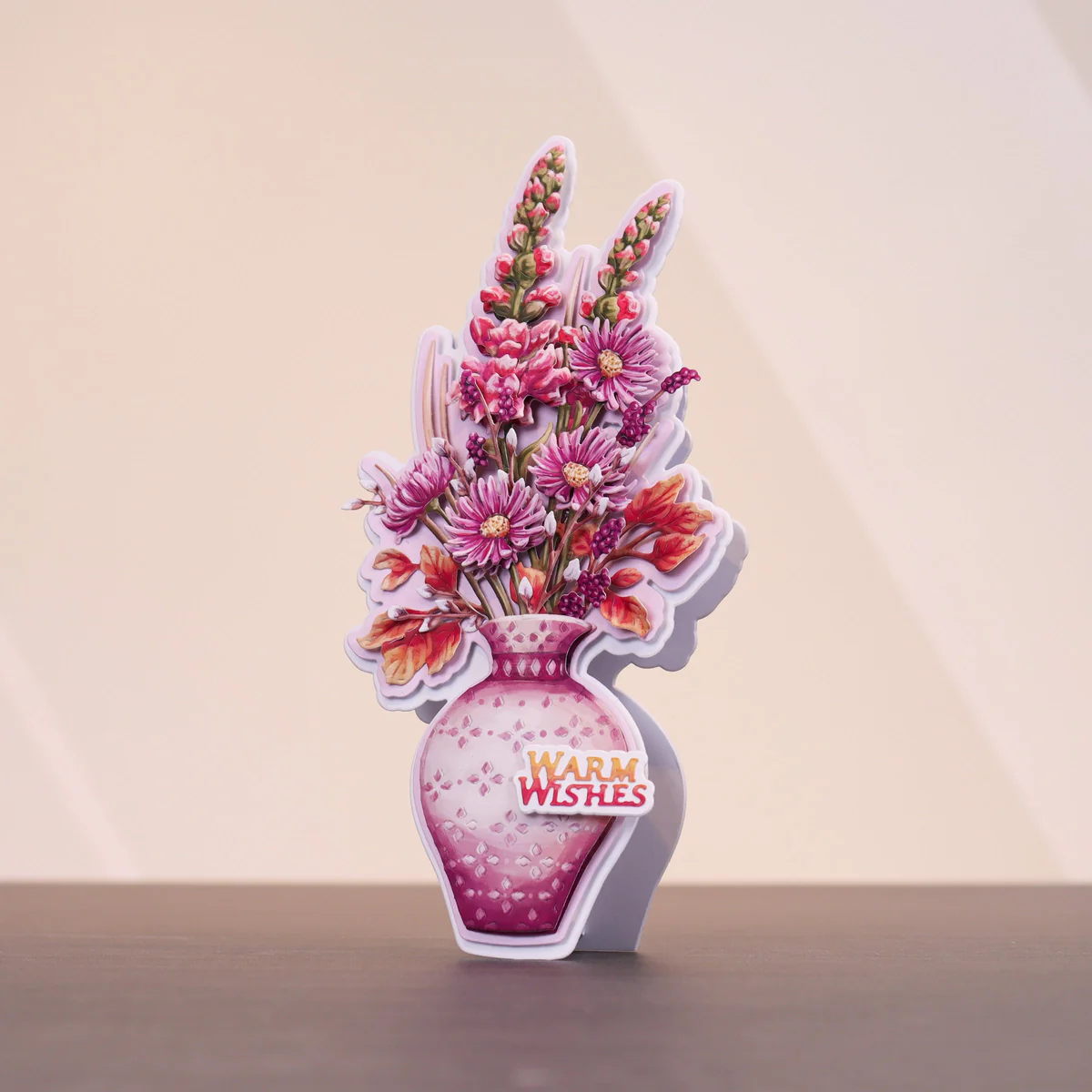 This die has artwork (Vignettes) included too! It has 19 dies. Several of these are layering dies that always make a card elegant. It includes the Warm Wishes Word Set and some small florals. And look closely...It has an easel stand! Did you miss that?